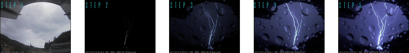 - STEP2は雷雨が始まり、雷雲が風車と避雷針塔の上空にかかり最初の上向雷の始まり。